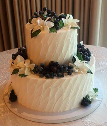 Small 2-Tier Buttercream Cakes10",6" Serves 56 slices at $170.00 +tax. Large 2-Tier Buttercream Cakes 12', 8" Serves 65 slices at $230.00 +tax.